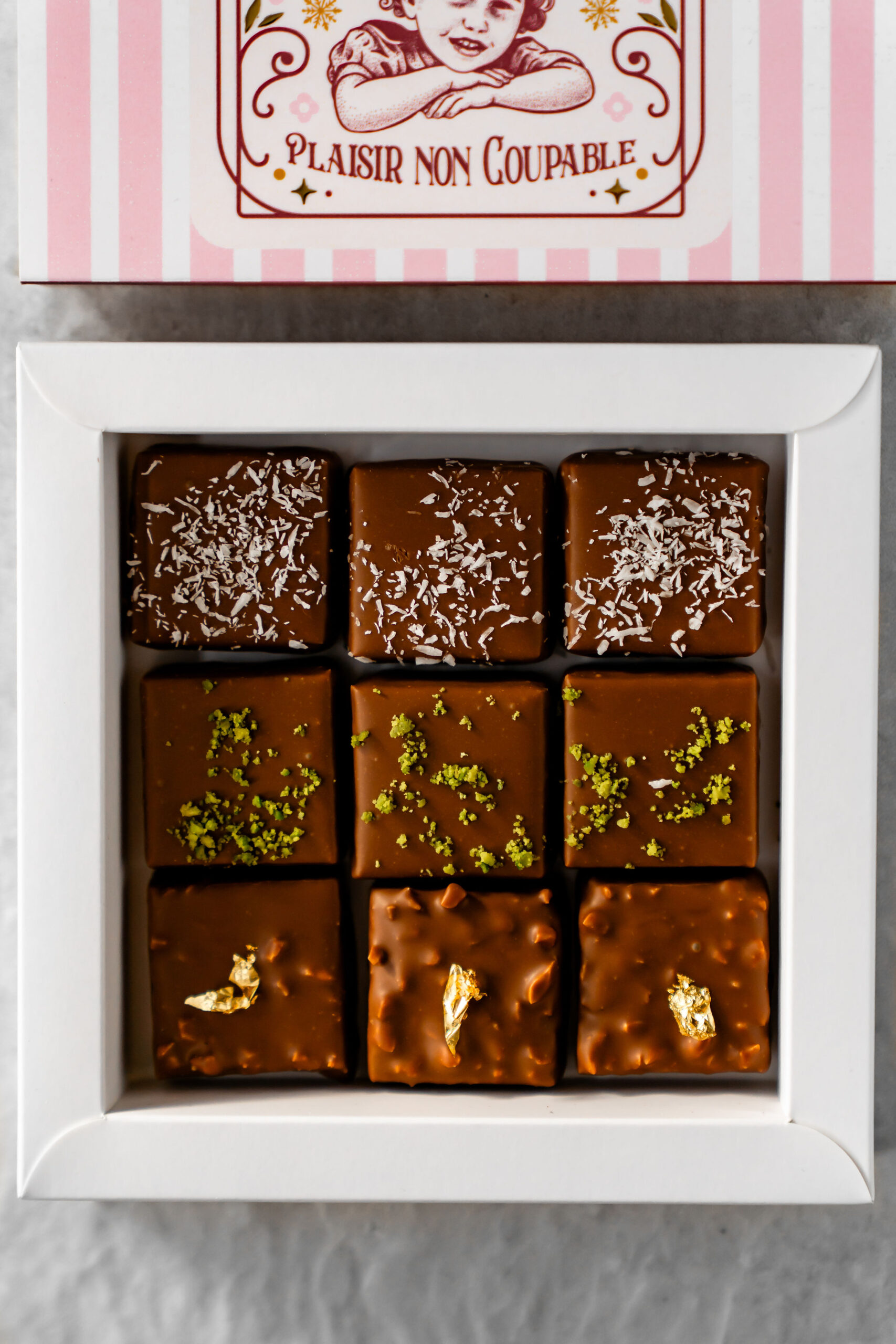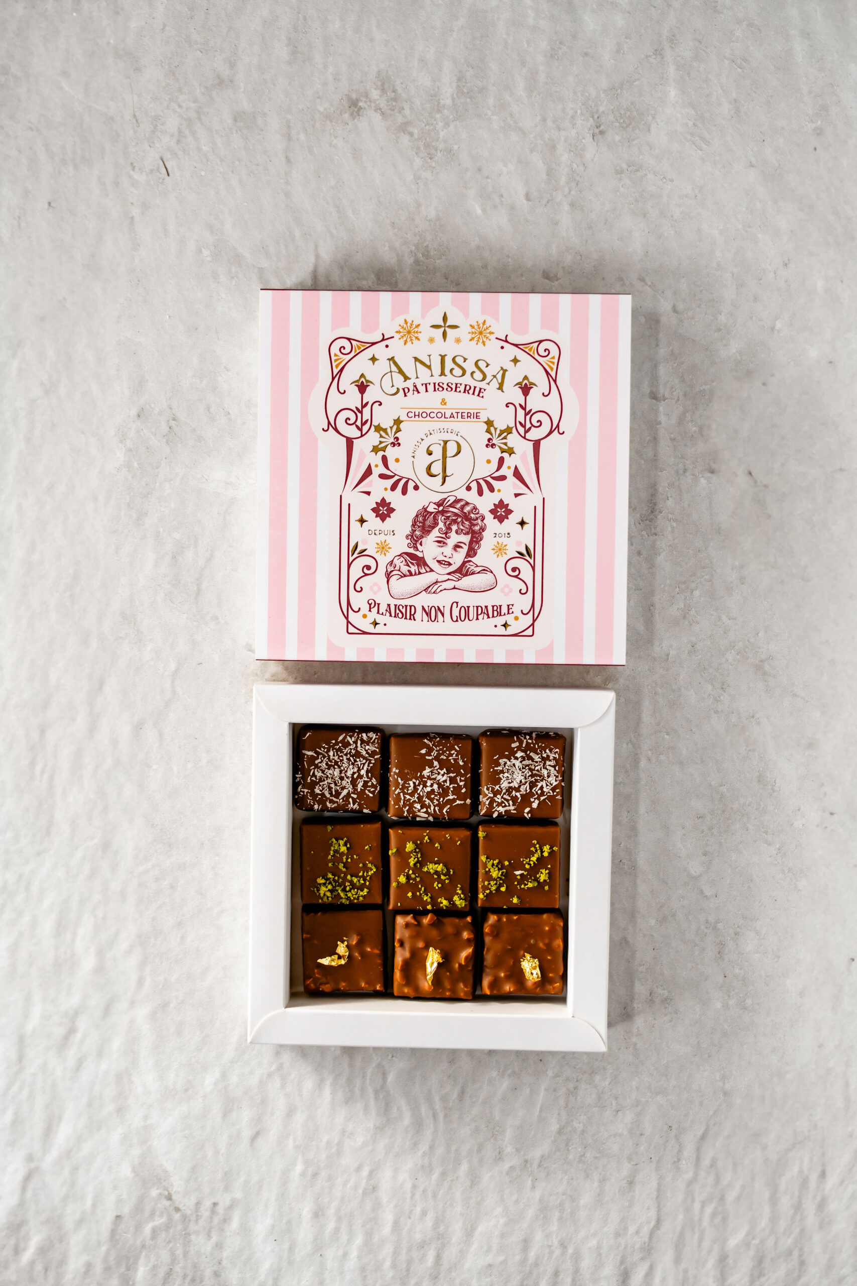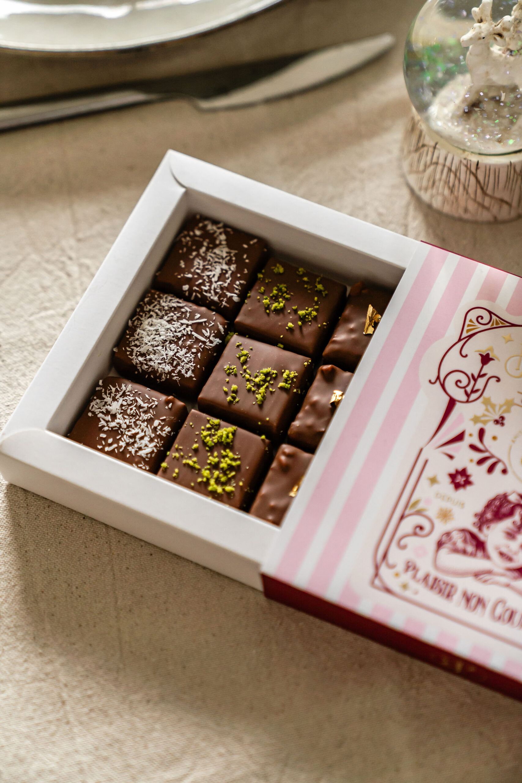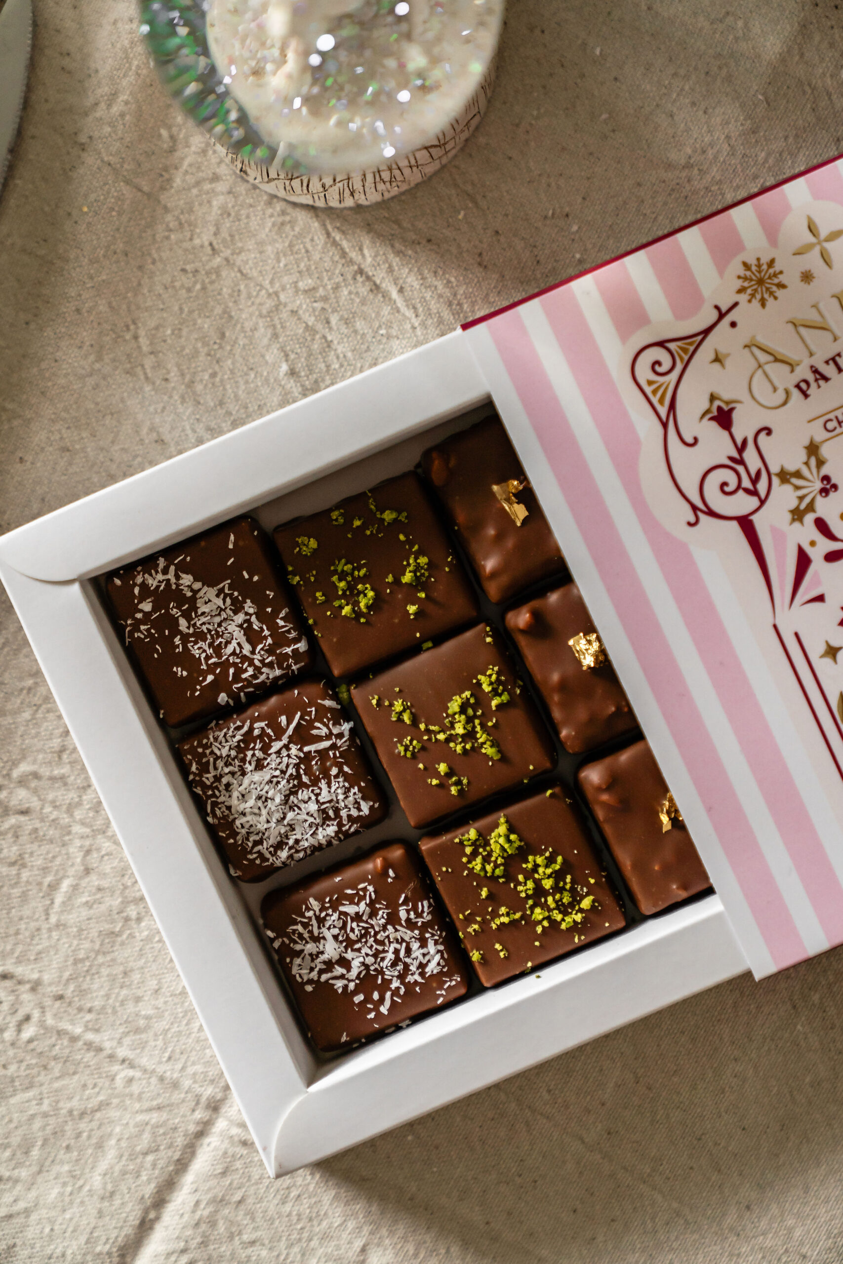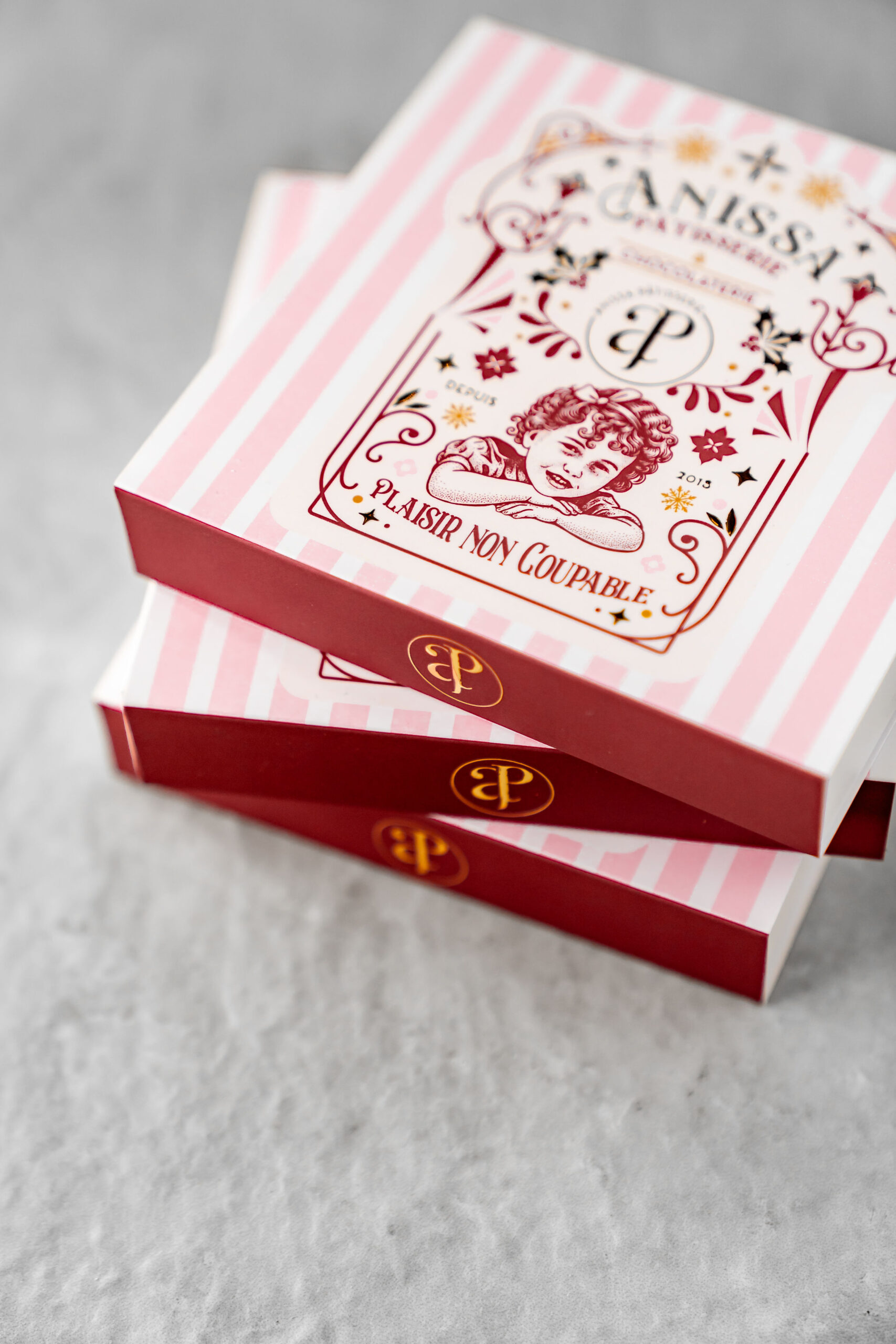 Pour Noël, nous vous proposons un coffret autour du praliné Anissa Patisserie, réalisé à partir de sucre de fleur de cocotier, gourmand et sain.